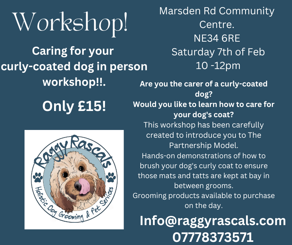 Do you own a curly-coated dog? Have you ever been shown how to care for your dog's coat or how to brush your dog correctly to keep those mats away? If you want to learn how to ensure your dog is well-kept between grooms, then my workshop is a must for you.